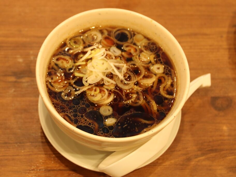 〆は黒醤油葱ラーメンを。これまた真っ黒。タマネギをローストした甘みが隠し味でした。