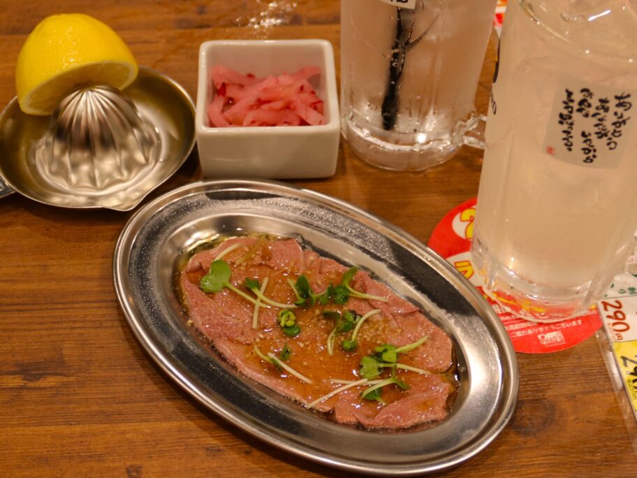 生中をお替り、相方は生搾りレモンサワーに変えました。ともに肉刺し好き。レバ刺しとハチノス刺しを追加しました。レバは独自加熱製法で生と変わらぬ食感を実現したそうで、確かにそんな感じ。もう少し厚めだとよかったですね。