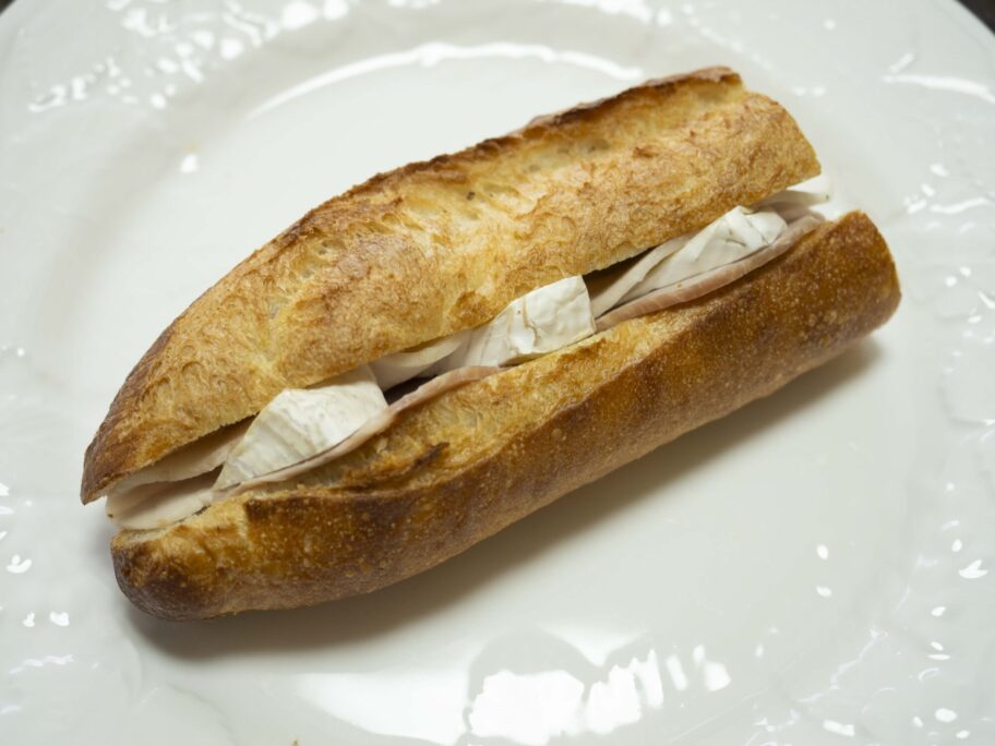 まずは定番の「ジャンボンフロマージュ」から。厚切りの豚もも肉のハムはしっとり柔らかく、塩気が穏やか。カマンベールチーズのコクと、ふわっと香るバターが合わさると、シンプルなのに驚くほど満足感がある。