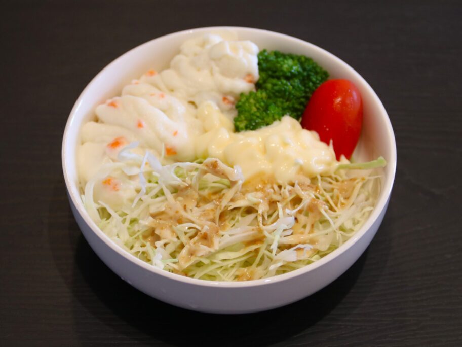 ▲ポテサラにはゴマドレッシングのキャベツも