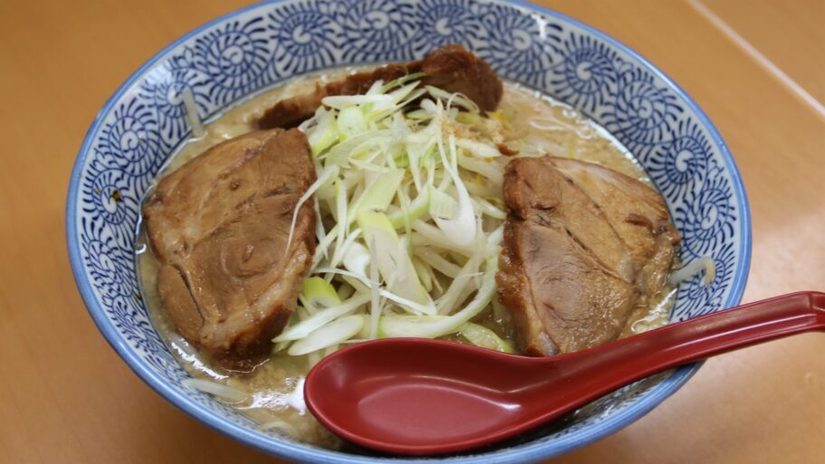 でも、旨いですね。辛さの中に奥深い味わいを感じます。豚骨だけでなく、鶏ガラや魚介系、野菜から旨みを抽出しているのでしょう。そして、決め手はスープに浮いている背脂。甘みがスパイシーな辛みと上手に調和しています。