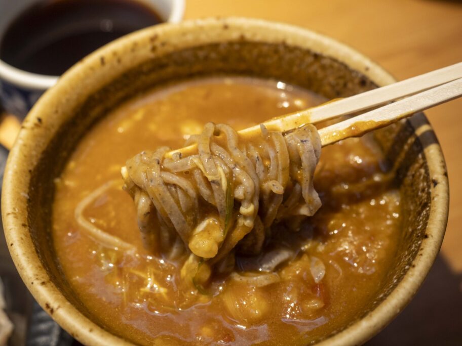 さて、〆はT-1グランプリを制したことがある「トロトロ煮豚豚咖喱セット」に決めていましたが、さすがにご飯までは無理。ということで、カレー汁蕎麦をいただきました。