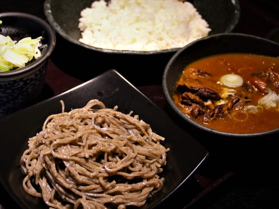 野趣あふれる田舎蕎麦とスパイシーなカレーが人気の店です。夜は旬の刺身や豚肉、鴨肉料理を肴に半個室の席でゆっくり酒を楽しめます。