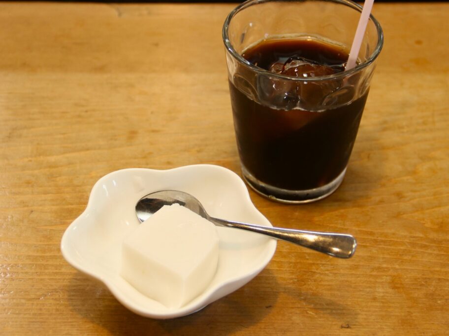 食後にココナツミルクプリンとアイスコーヒーをいただき、ご主人とおしゃべりを楽しみます。