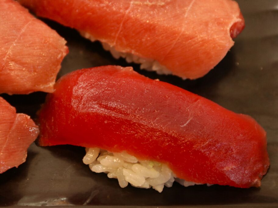 まずは赤身から。鮮やかな赤です。しっとりとした食感。旨みとともにかすかな酸味を感じます。