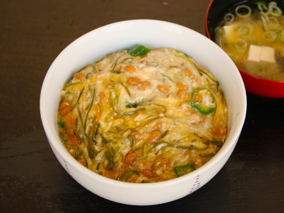 ネバネバに包まれたご飯がするりと胃に落ちていきます。普通盛りながら丼に軽く一杯。でも、無理なく美味しくいただけます。