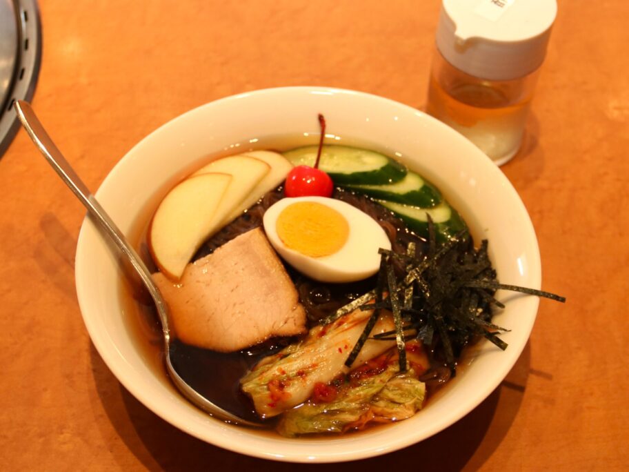 ▲冷麺は独特の黒い蕎麦粉入りの麺