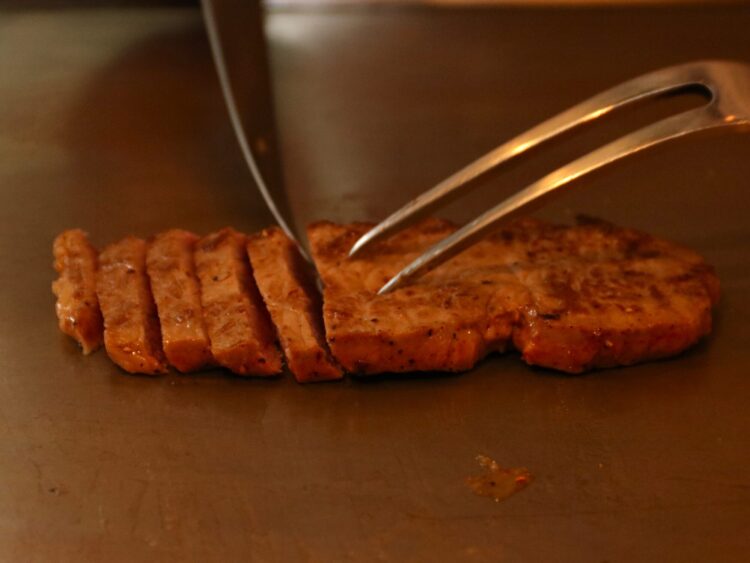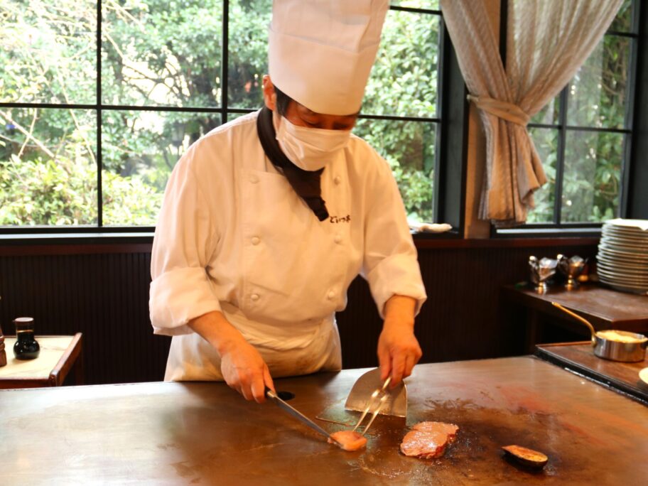 開店して40年。酒井さんは独学で料理を学び、進化させてきました。ステーキは食べる人に合わせて、カットの仕方を変える気配りをしています。