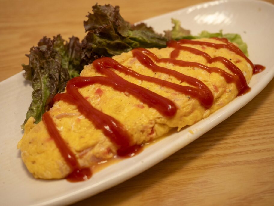 初めて注文した田舎オムレツは予想に反してとろとろ。紅ショウガと同じように細切りにしたハムが入り、いいつまみになりました。
