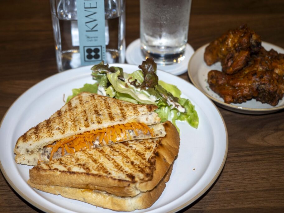 まずは、ビールと土曜限定の小皿料理からマスター、中嶋有亮さんお薦めの手羽元黒胡椒焼き、通常メニューの「サバとキャロットラペのホットサンド」を注文します。サバサンドはイスタンブールの名物。いつか「飛んで」食べに行きたいな。