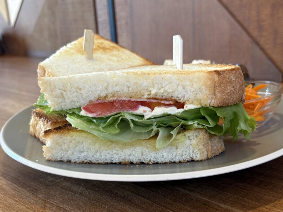 かぶりつくとサクッと音がして、ベーコンの塩気とトマトの酸味、マヨネーズのような白いソースのまろやかさが一度に広がります。口の端にソースがついても気にせず、もう一口。パンの甘みが残り、ふっと笑みがこぼれました。