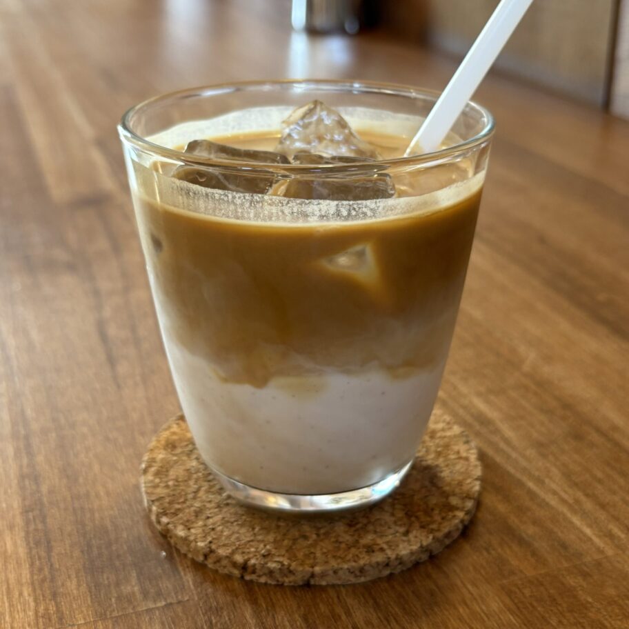 カチャ、と陶器にフォークが触れる音。氷がグラスにぶつかる音。BGMに混じる小さな生活音が心を落ち着かせます。木のぬくもりとコーヒーの香ばしさの中で、時間が静かに流れていきます。ここに来ると、余計な力が抜けていくのを感じます。