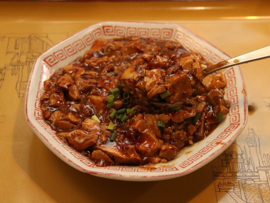 辣醤麺に比べると、麻婆豆腐の辛さは控えめ。こちらは花椒の痺れる辛さが加わりますが、麻(マー)と辣(ラー)の二重奏は心地良い響きです。白飯も援軍。追いラー油する余裕がありました。