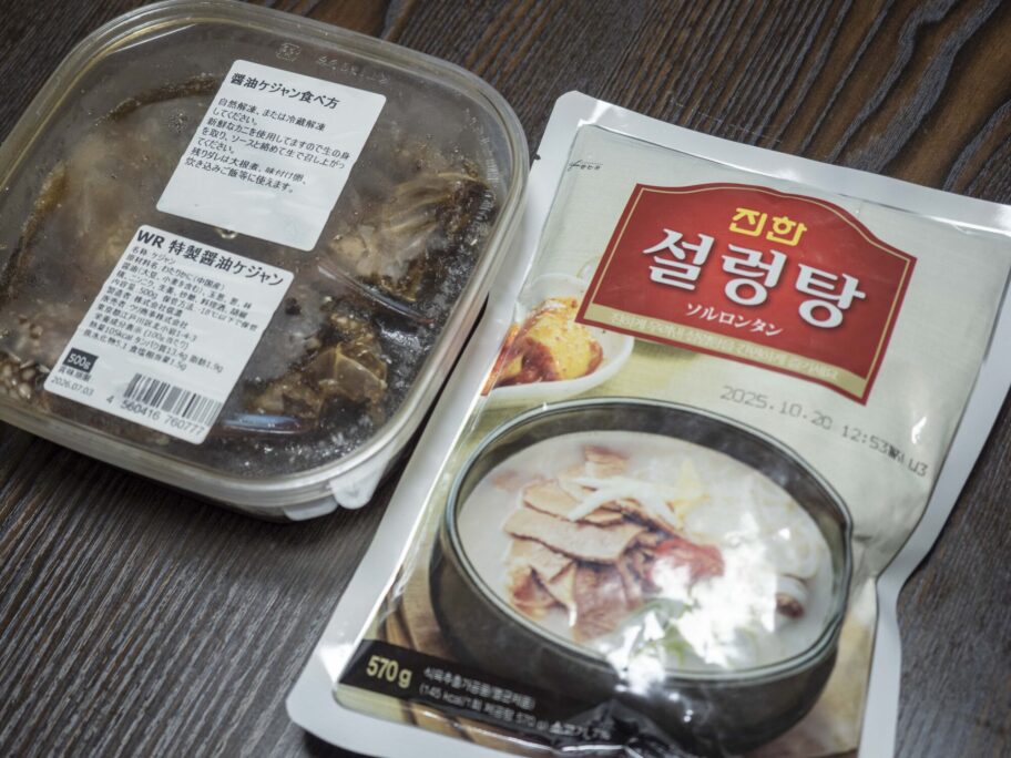 ケジャンが解凍する間、チゲやスープも作りましょう。赤いスンドゥブチゲと白いソルロンタン。簡単に調理できるレトルトがありますから。あとは炊き立てのご飯を用意するだけです。