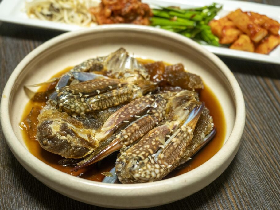 お目当てはカンジャンケジャン。生のワタリガニを醤油ベースのタレに漬け込んだ料理です。韓国料理店で時々見かけますが、結構いいお値段。こちらは脚の部分だけながら激安で手に入ります。