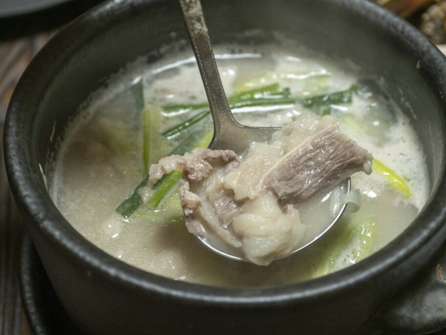▲ソルロンタンは牛肉入り。ニラが後乗せ