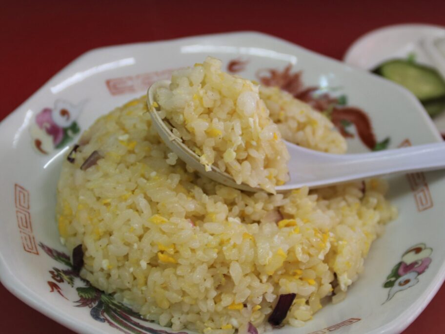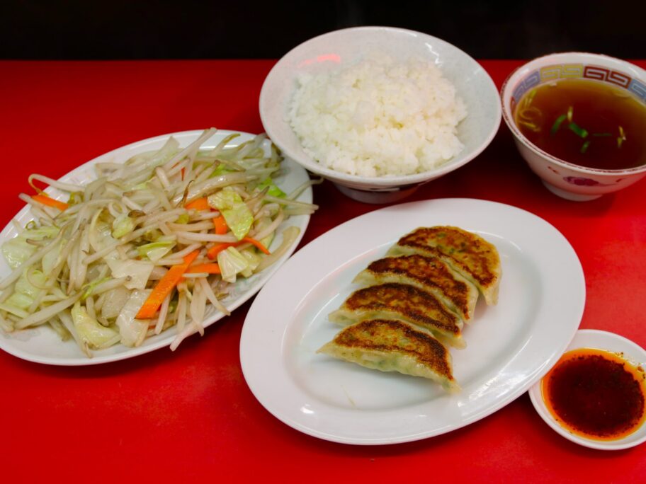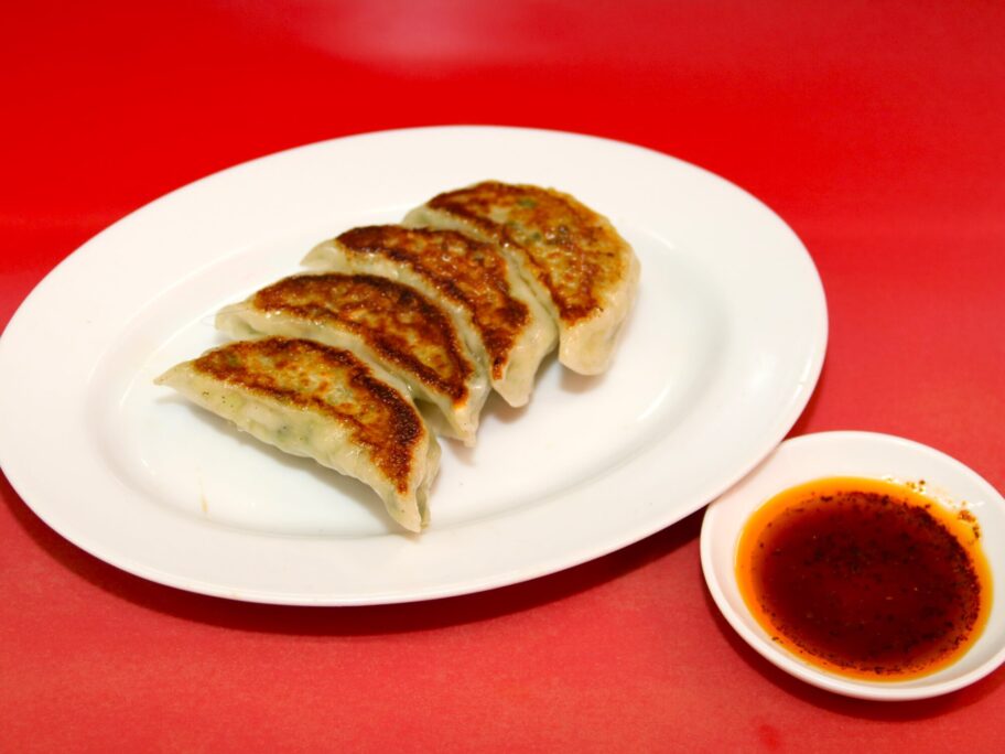 餃子は野菜、特にニラが多めです。皮がパリッとして、噛むとジューシー。単品は6個入りですが、セットは4個。ちょうどいいでしょう。