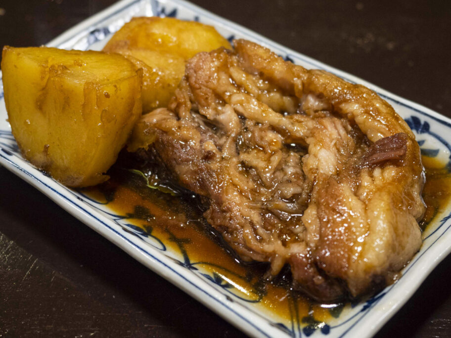 ここに来たら絶対に頼むのが肉じゃがです。大ぶりのジャガイモに、とろとろに煮込まれた豚バラ。甘辛い味付けに七味と山椒を多めに振ると、思わず笑みがこぼれます。脂の甘さと香辛料の刺激がちょうどいいバランス。シンプルなのに、ほっとする家庭の味です。