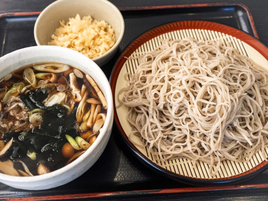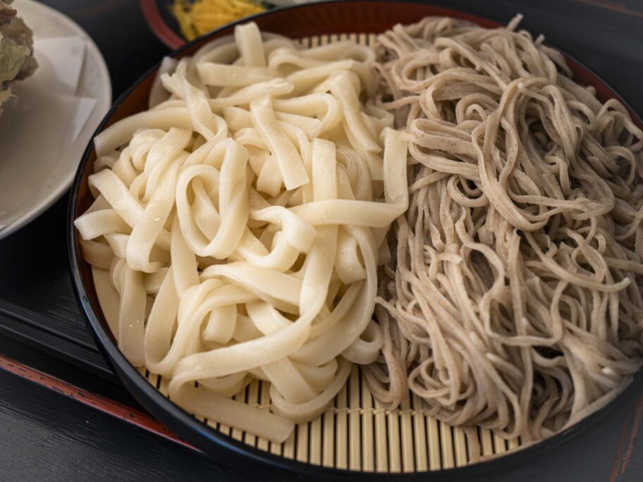 汁はカエシが強めで、やや甘口。蕎麦にはワサビ、うどんには七味を多めに使いました。