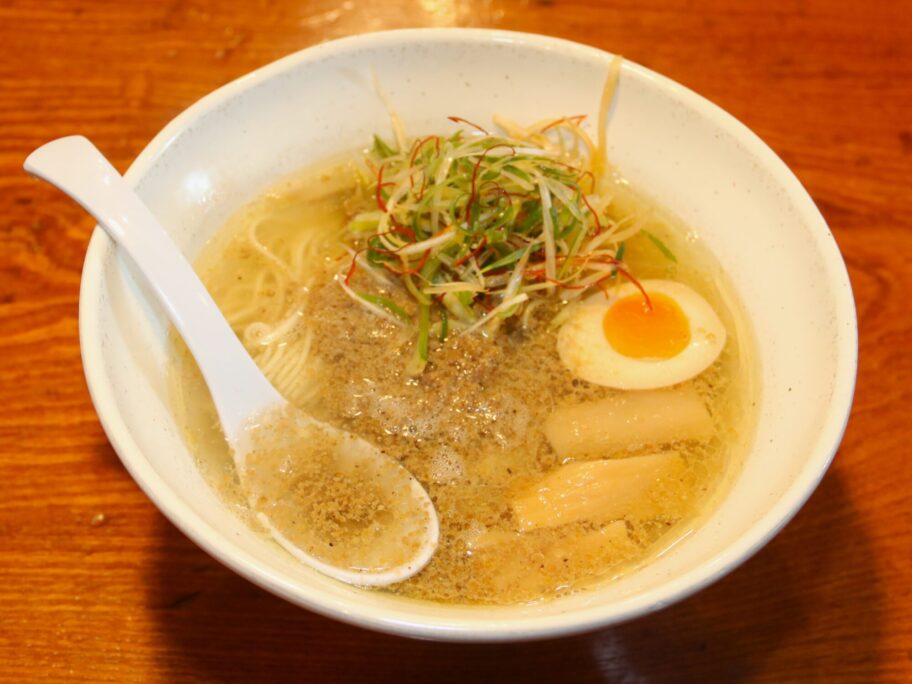 王道の塩か、キレの醤油か。悩みながら店に入ると、見つけましたよ、塩坦々麺の張り紙。塩味の担々麺とは珍しい。「期間限定」「1日10食」「店長おすすめ」。これは決まりでしょう。