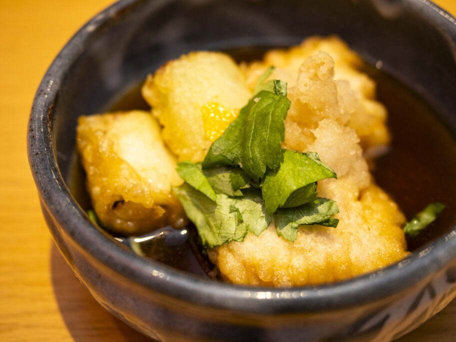 ▲白子の揚げ出し。澄んだ出汁に濃厚な白子