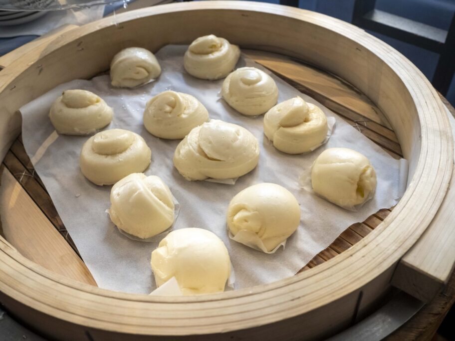 ▲蒸したての花巻をどうぞ
