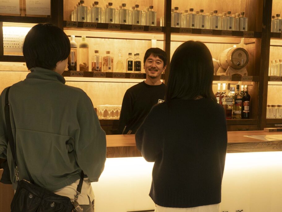 もう一杯は「JLネグローニ」。共同創業者でアメリカ在住のジャン=リュックさんの名を冠したカクテルです。ベースのジンに、柚子に漬け込んだベルモットとカンパリを合わせています。度数は高めで、苦み、甘み、柑橘の爽やかさが幾層にも重なります。二口さんの解説を聞きながら味わうと、ジンの世界観がより鮮明になります。