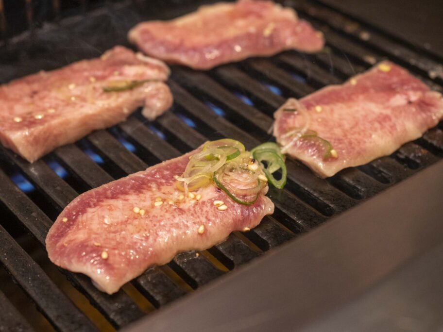 分厚いタンにみんなニッコリ。焦げ目が付いたらレモンダレに付けて。タンに歯がサクっと入ります。これは最高の切り込み隊長になりました。