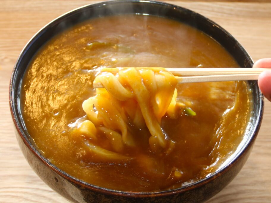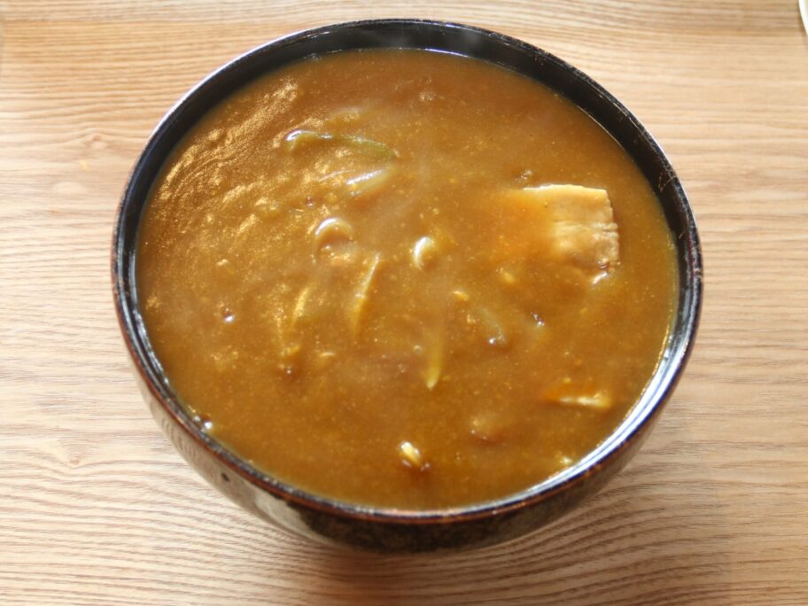 カレーは出汁を効かせながらもスパイシーで辛口。うどんを上げるのに力がいるほど粘度があり、うどんによく絡んでくれるのが喜ばしい限りです。