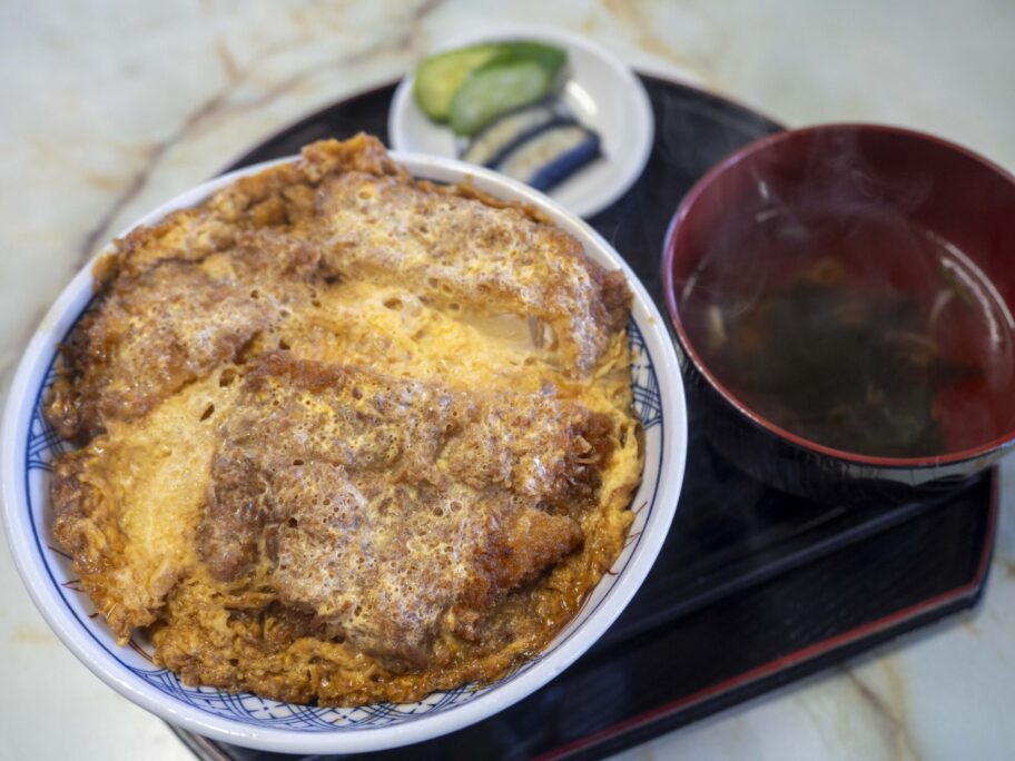 ▲看板メニューはかつ丼。これも昭和