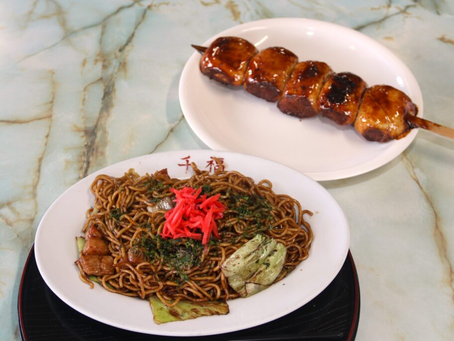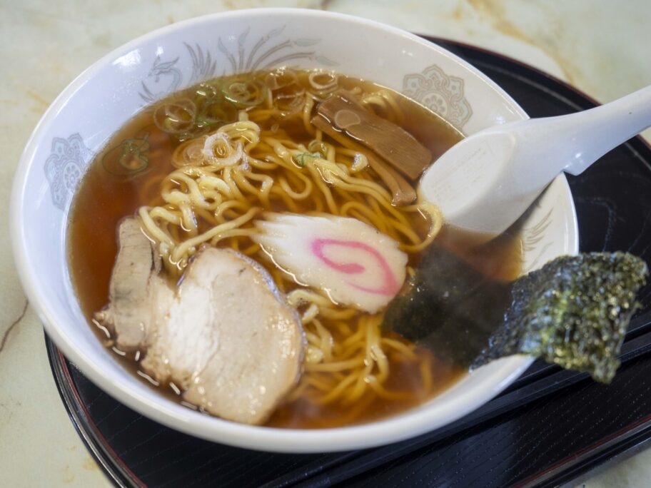 2人でラーメンと焼きそば、それと名物の焼きまんじゅうを一本注文しました。