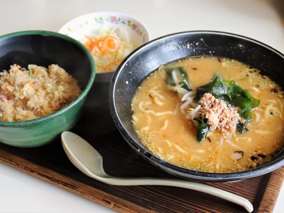 ▲ランチで人気の味噌ラーメンと五目チャーハンのセット