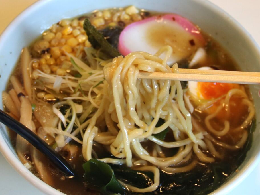 多加水でよく熟成させた太麺はもちもち。味噌に合わせた麺でしょうが、こちらにも合います。