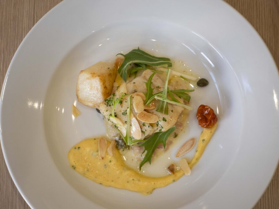 卵黄を使ったベアルネーズソースが、その身をやさしく受け止めます。魚の下には白菜のクリーム煮が敷かれていて、全体の味をやわらかくまとめています。何度も言いますが、こういうひと手間がうれしいのです。