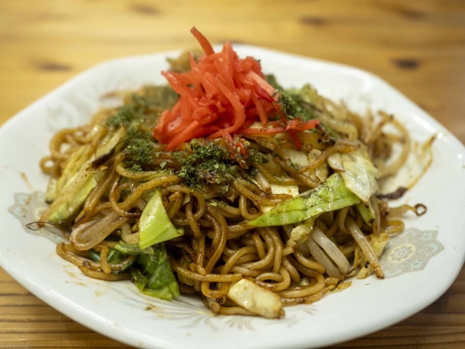 食堂を始めたのは1966(昭和41)年だそうです。ちょうど“還暦”ですが、戦前は熊野神社近くで天丼、戦後は焼きそばと焼きまんじゅうの店でした。天丼と焼きまんじゅうはメニューからなくなりましたが、焼きそばはしっかり受け継がれています。そして、うれしいことにワンコイン圏内です。