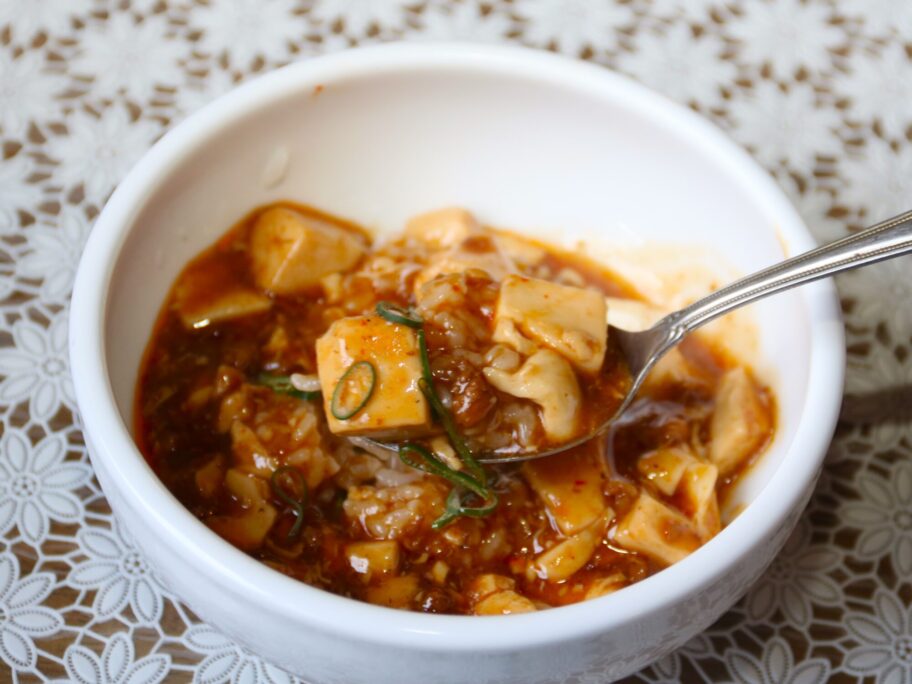 セットの麻婆豆腐は意外や優しい辛さです。山椒の痺れるような麻(マー)が控えめ。豆腐も木綿でなく滑らかな絹です。ということで、こちらもラー油をたくさん投入、唐辛子の刺さる辣(ラー)を重視した味に激変させました。