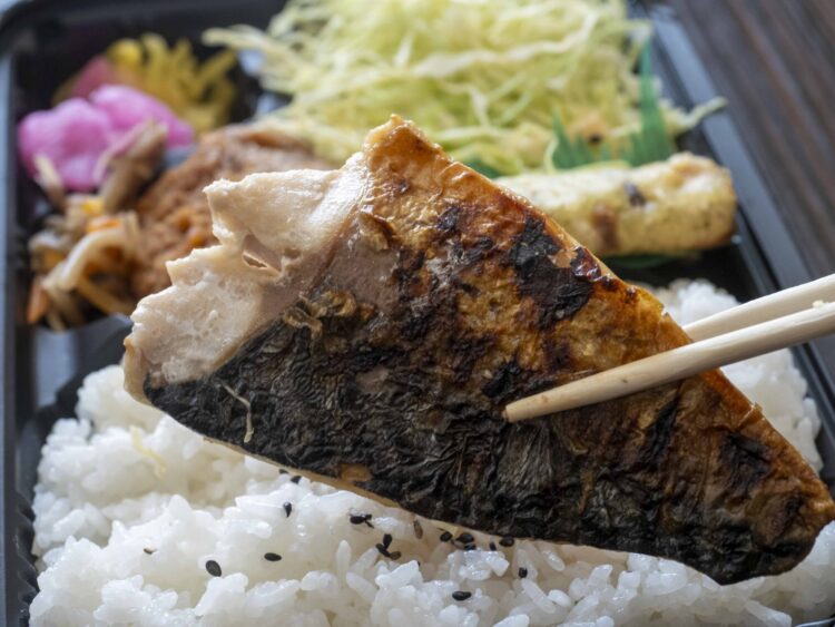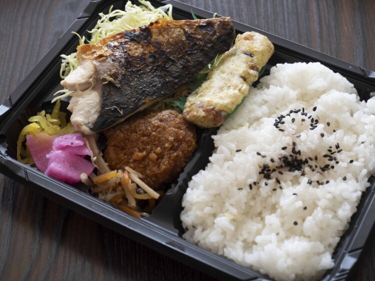 幕の内はシャケ、サバ、ハンバーグと日替わりの揚げ物の種類あります。エビフライにも魅かれましたが、大きな焼きサバが美味しそう。これにしました。