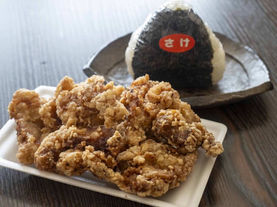 ▲唐揚げとおにぎり。どちらもボリューミー