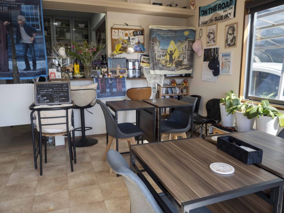 玄関を開けた瞬間、流れてきたのは浜田省吾の曲でした。赤城山南麓の一軒家カフェです。リビングの棚にはアルバムや写真、ポスター、ツアーグッズ。