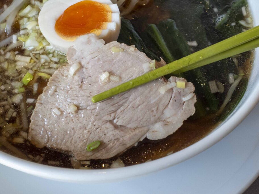 チャーシューは脂が少なめで厚いのに、ほろりとやわらかい。噛むほどに肉の味が戻ってくる感じです。
