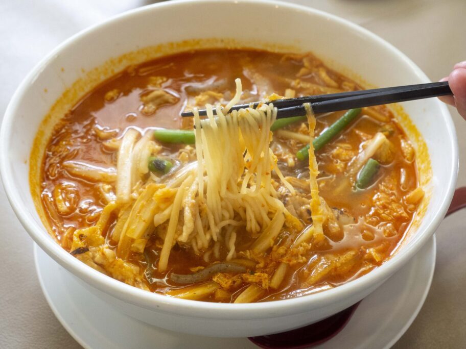 ▲天壇ラーメンは豆板醤ががっつり利いた醤油味