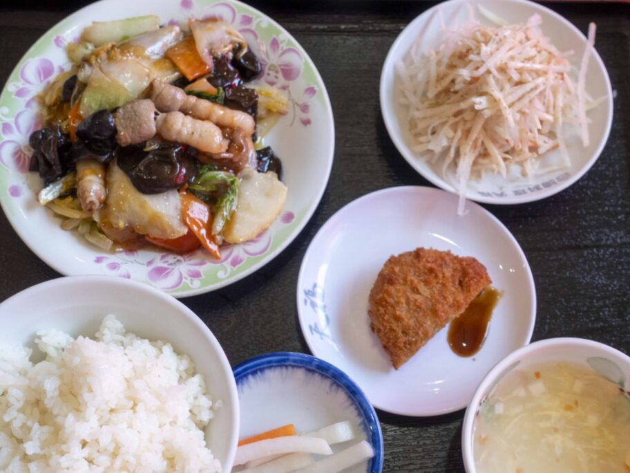 豚肉とキクラゲ炒めは味付けがはっきりしていて、ご飯が進みます。特にキクラゲの厚みがいい。ぷりっとした歯応えが際立ち、野菜の食感と合わさって単調になりません。700円でこの内容なら十分どころか、かなりありがたい昼ごはんです。