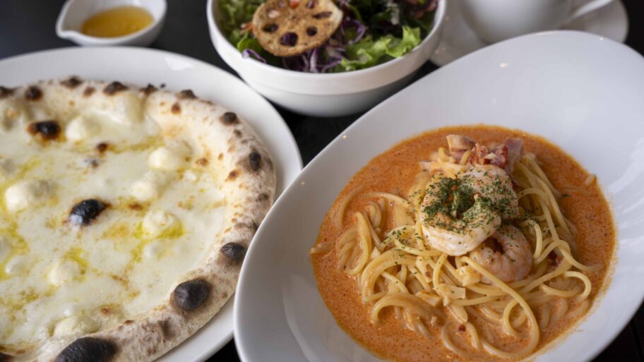 優しい味のピッツア、パスタ