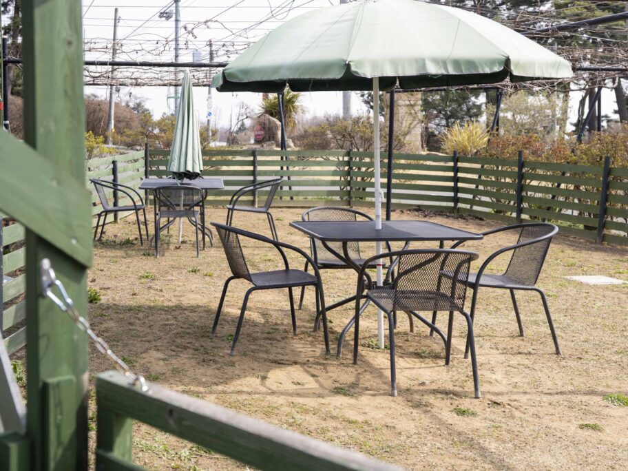 広い敷地には芝生空間があり、緑のパラソルの下でワンちゃんと過ごせる席もあります。前橋市内に、こんなレジャー気分に浸れるカフェがあるのはうれしいことです。