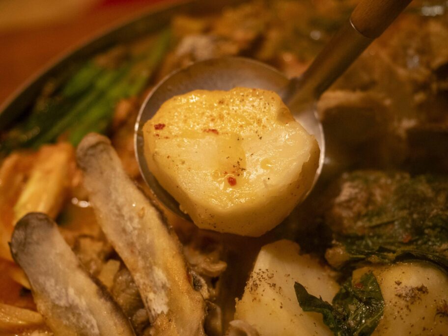 そしてジャガイモ。これが主役です。ホクホクで、スープの旨みをしっかり吸っています。