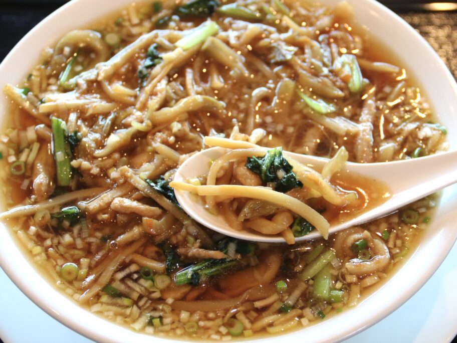 具に味が付いている分、スープはあっさりめの醤油味。基本のスープの旨みがじんわり広がります。ザーサイが寿司のガリのように口をさっぱりとさせてくれますよ。