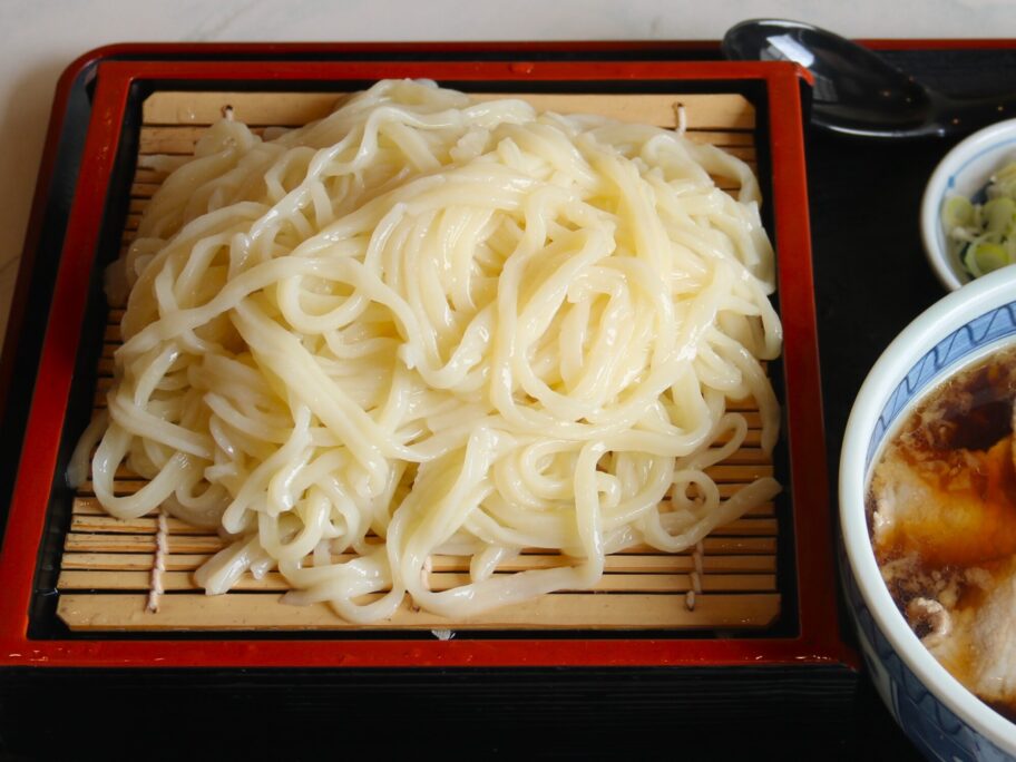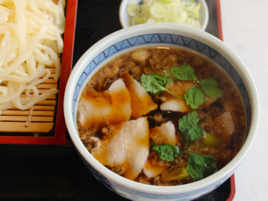 冷たく締められたうどんを熱々の肉汁に付けて、勢いよく啜ります。もっちもち。柔らかさの中に適度な弾力を感じます。肉汁が主流の武蔵野うどんとは対極的。讃岐うどんに近い優しいうどんです。