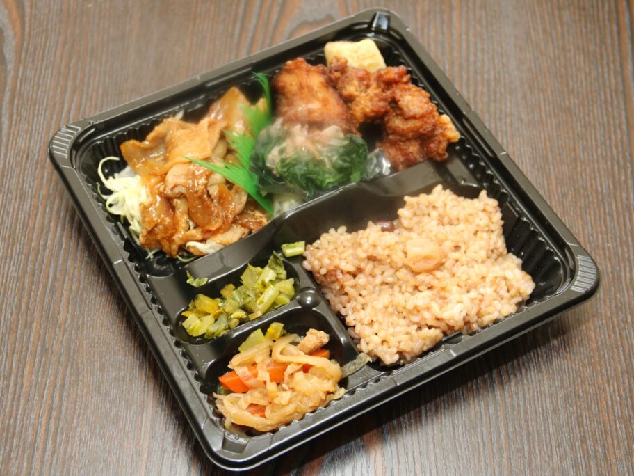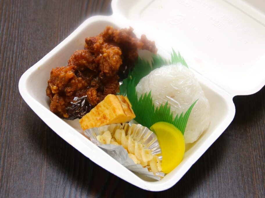 注文してから作るのでほっかほか。焼肉、いい味していますね。唐揚げも下味がしっかり付いています。ご飯が進む、進む。