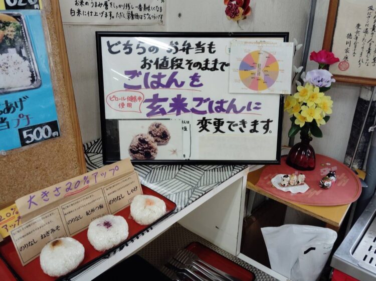 お米屋さんが直営する弁当屋さん。美味しいに決まっていますね。ここにもありました、ワンコイン弁当が。「日替わり弁当プチ」です。