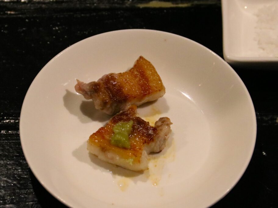 ご指南通り、まずは塩とワサビでいただきます。脂身の甘み、赤身の旨みが引き立ちます。これはいい。日韓融合のなせる業でしょう。
